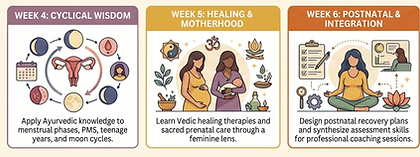 This program will benefit prenatal yoga teachers, Doulas, Coaches, herbalists as well as Ayurvedic coaches, Ayurveda counselors, and those who work with women. While not a doula program, this Vedic Ayurvedic journey offers invaluable wisdom for doulas and any woman navigating life's transitions. We empower you with the profound knowledge of Ayurveda, basic herbal remedies, transformative meditation, sacred mantras, and nourishing meal planning. This holistic program, rooted in foundational Ayurvedic principles and Hindu Vedic rituals, guides women through every phase of their lives, revealing how personalized lifestyle and routine modifications can profoundly elevate mind, body, and spirit.